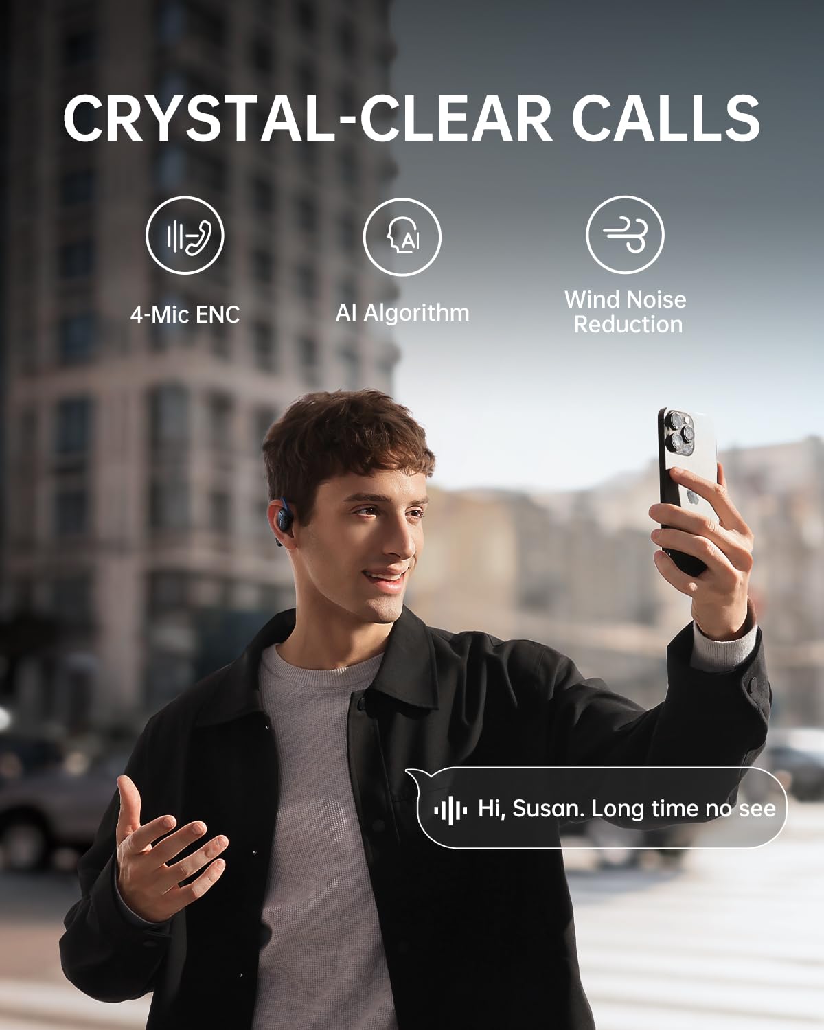 - CRYSTAL CLEAR CALLS: Built-in 4 microphones and the advanced AI algorithm accurately pick up your voice while filtering out noise. With Wind Noise Reduction Technology, regular wind noise will be filtered out on busy streets, allowing you to be heard clearly and effortlessly during crucial calls