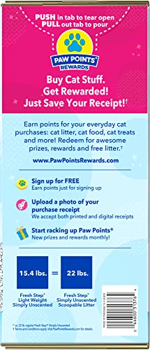 - 30% LIGHTER: This lightweight formula is 30% lighter compared to Fresh Step Simply Unscented Litter, giving you the same number of uses as a 22 lb box*