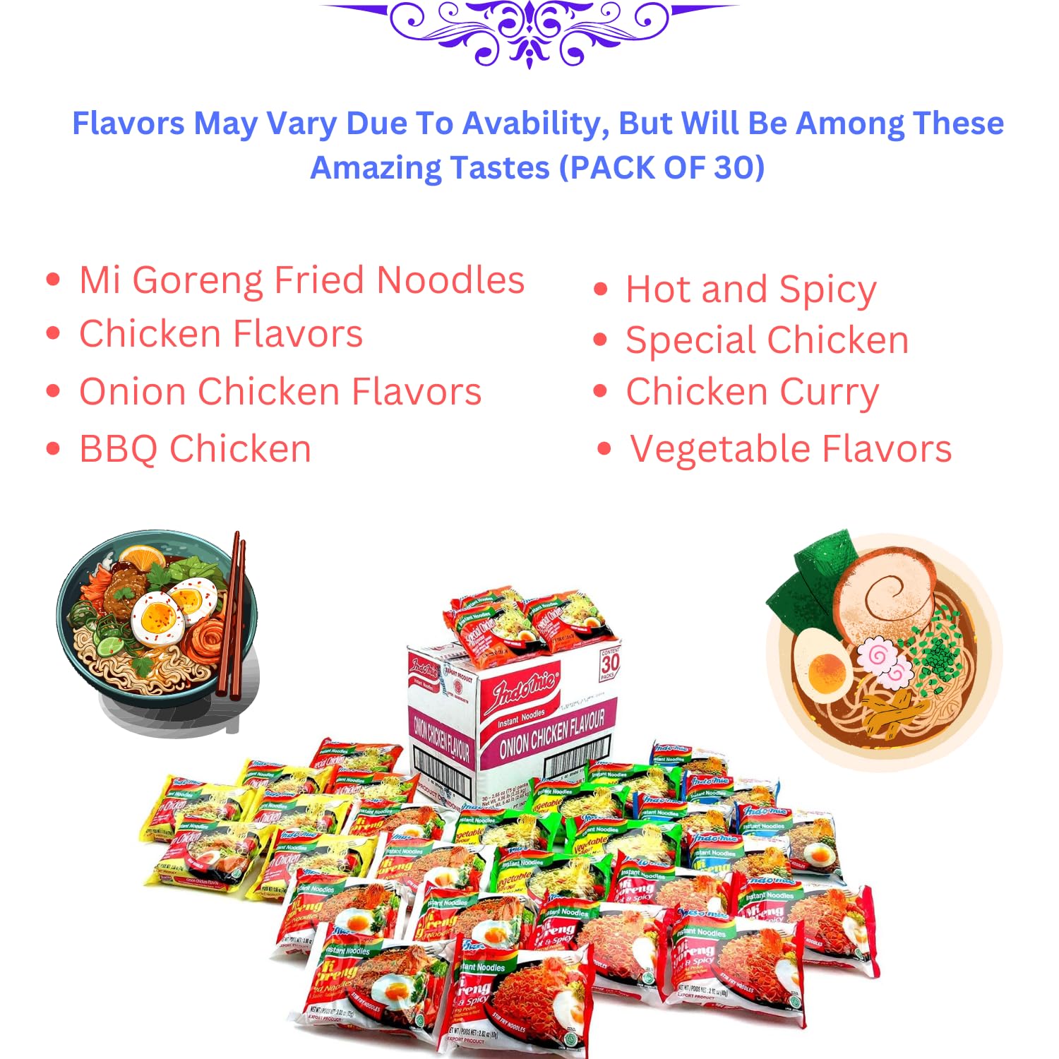 Indomie Variety Pack 1 Case (30 Bags)