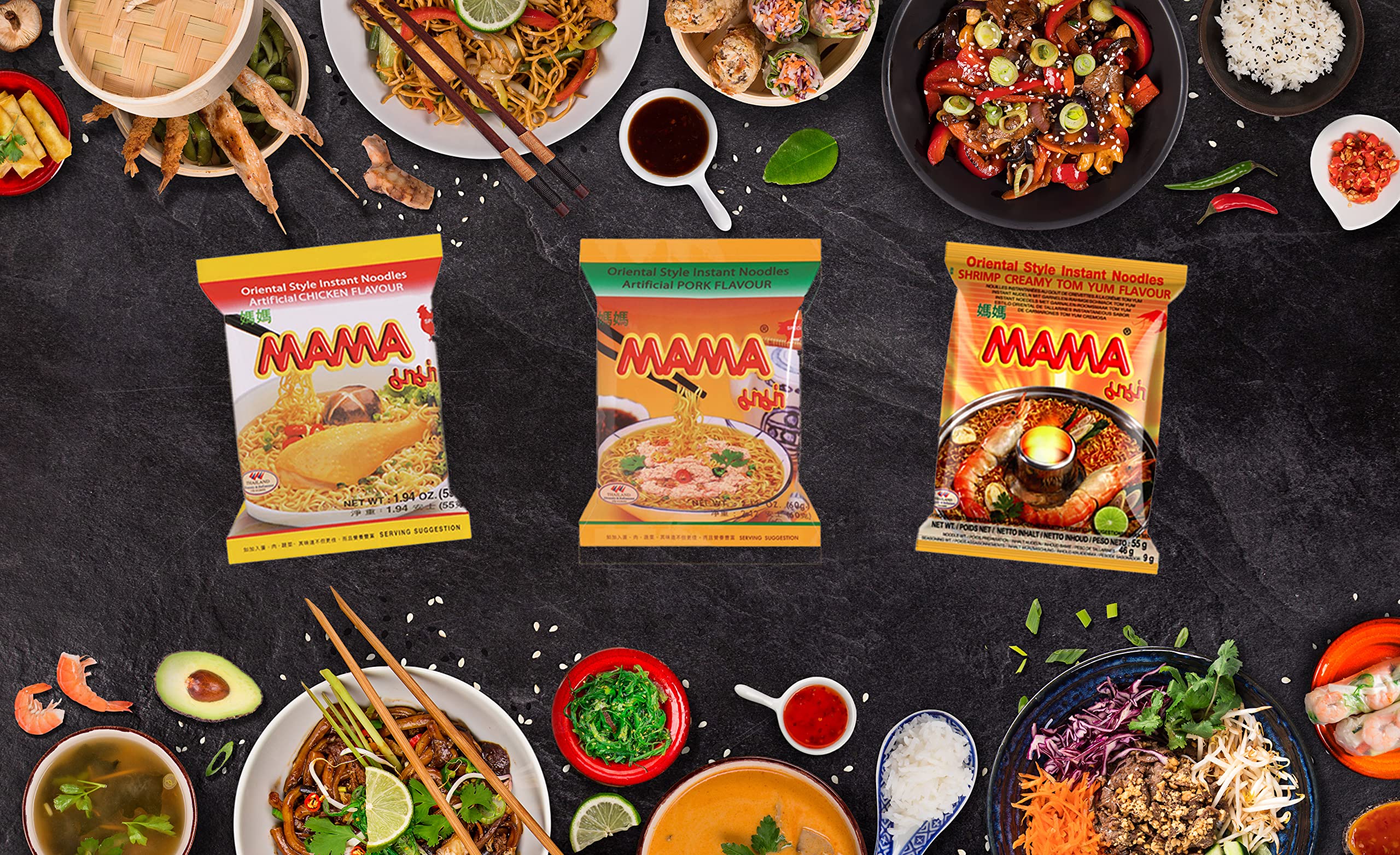 - Mama ramen noodles are imported from Thailand for original authentic flavor