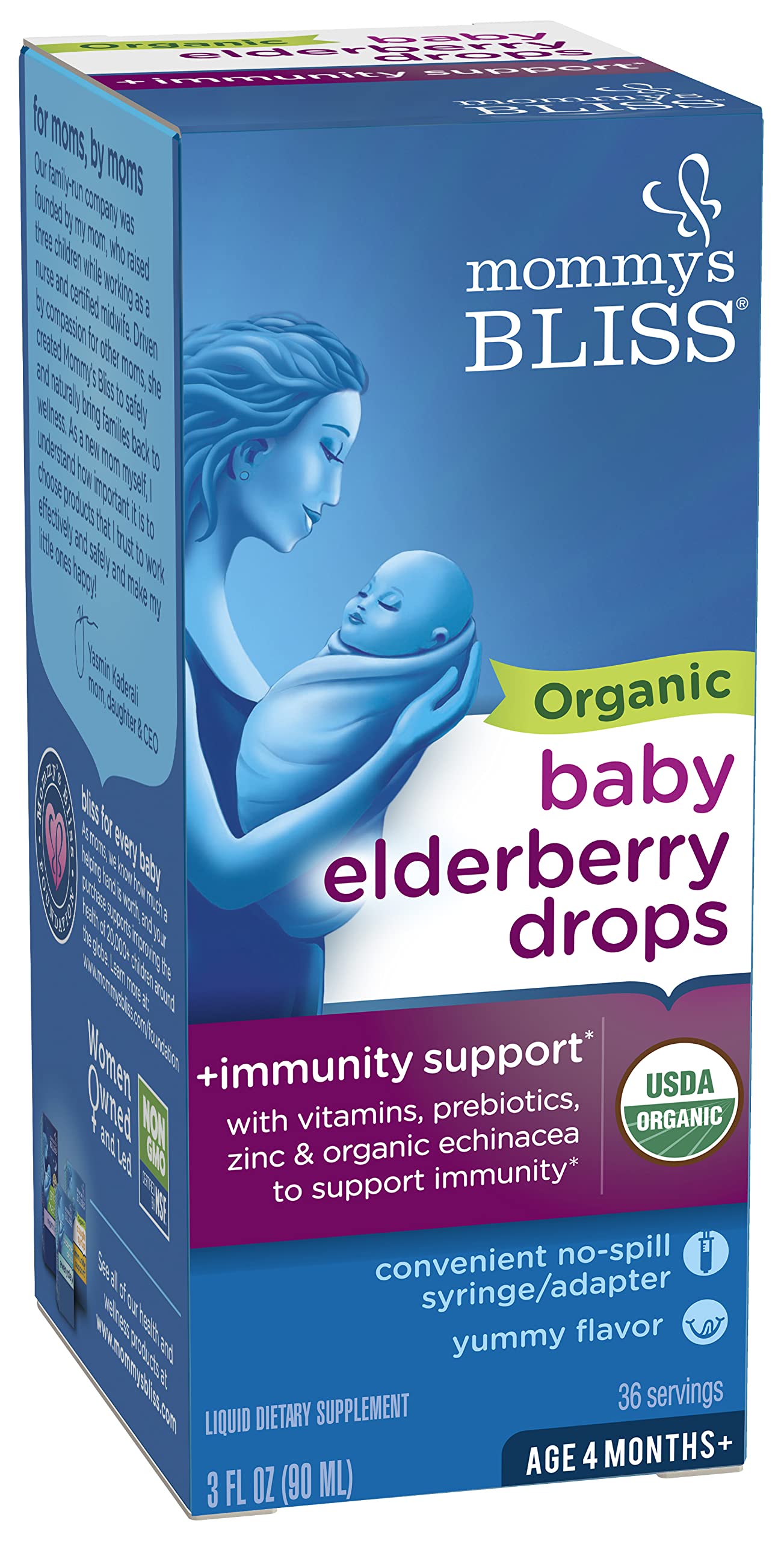 Mommy’s Bliss Organic Baby Elderberry Drops, Immune Support with Vitamins, Prebiotics, Zinc & Organic Echinacea, Age 4 Months +, 3 Fl Oz (36 Servings)
