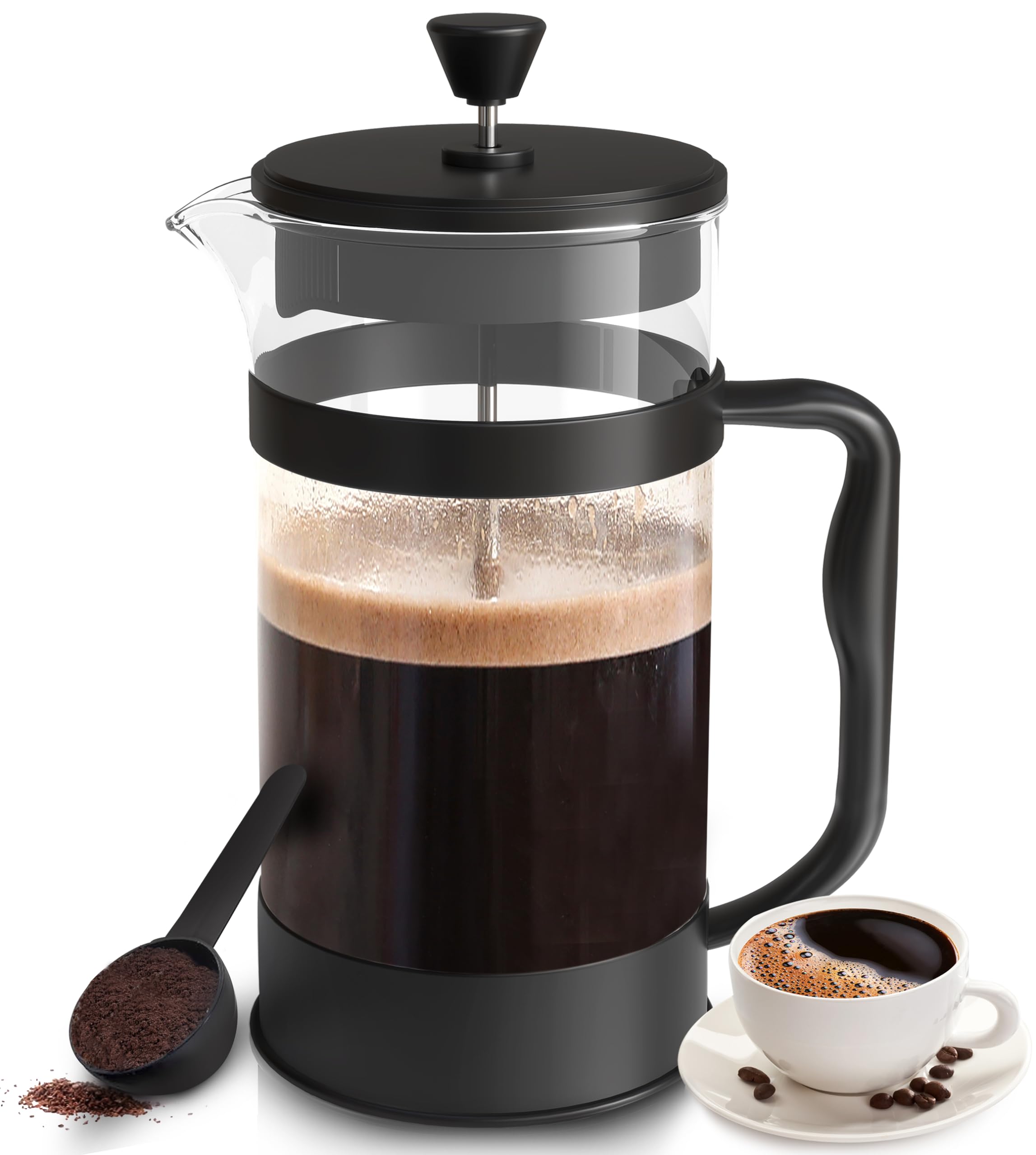 - EASY TO USE: The French press comes with a coffee spoon and is convenient for quick coffee making. Brew homemade coffee in just four easy steps; add coarse ground coffee, add hot water and stir, wait a few minutes, and press to enjoy a refined flavored cup of coffee.